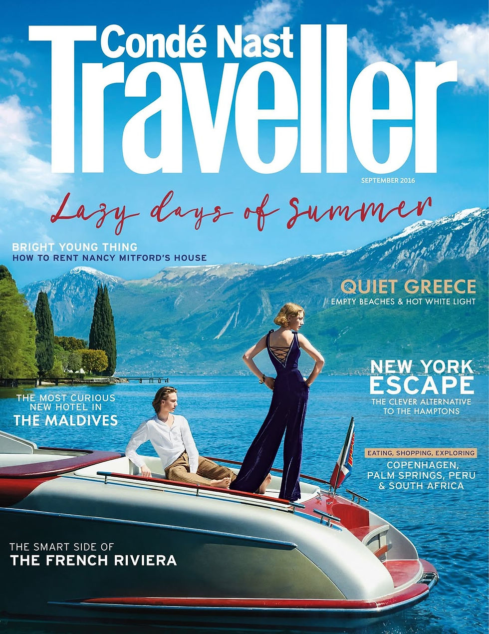 After studying these three magazines, I have come to the conclusion that even though they are excellent examples of luxury lifestyle media, I want to create something different for my magazine. I love the sophisticated codes and conventions they use, but I don't want to include any models or people on my pages. Instead, I want every photograph to focus purely on the buildings, streets, harbours, architecture, and aesthetic details of the Riviera. My magazine will challenge the convention of model-heavy pages by using only original location photography to construct a calm, immersive, and exclusive atmosphere. This way, the representation will be about the place itself and the feeling it conveys, not about fashion models. I will keep the elegant masthead, gold and navy colour scheme, and generous space, but I will make the visual identity centre entirely on the beauty of the locations.